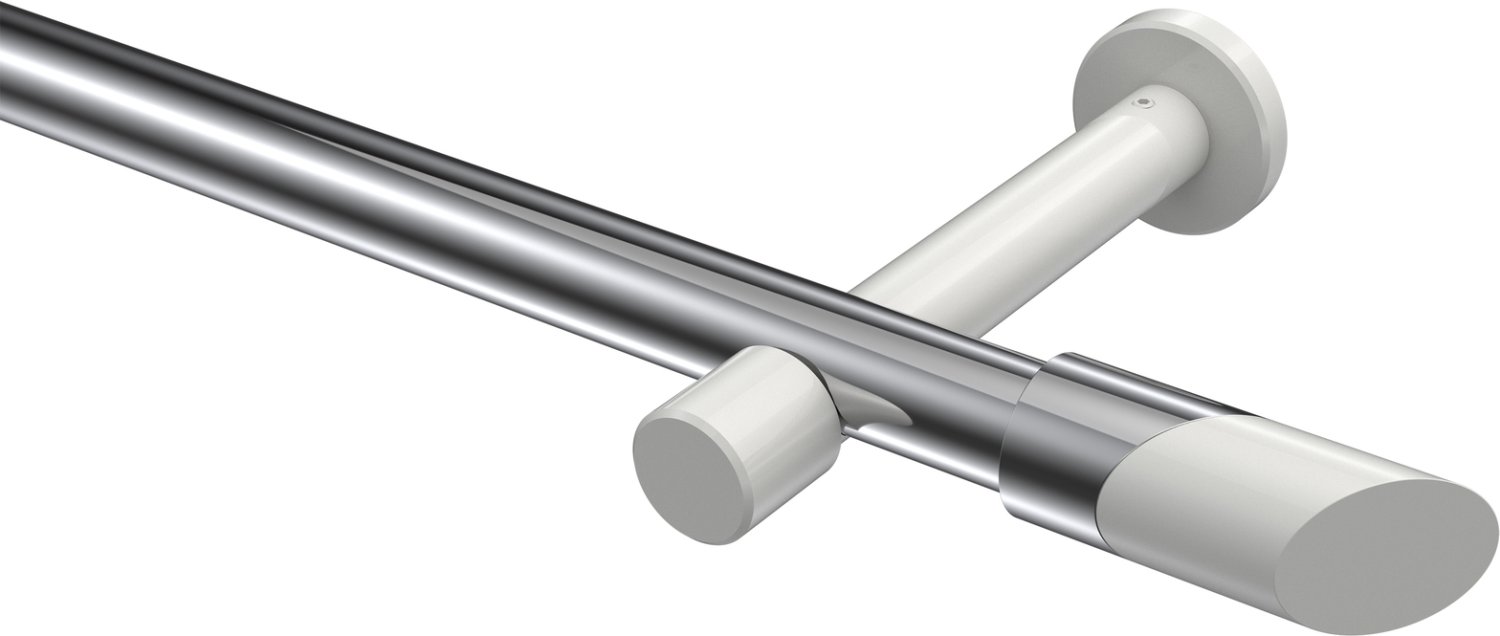 Gardinenstangen aus Metall in 20 mm Ø, 1-läufig, Modell PRESTIGE - Verano Chrom / Weiß (ohne Ringe)