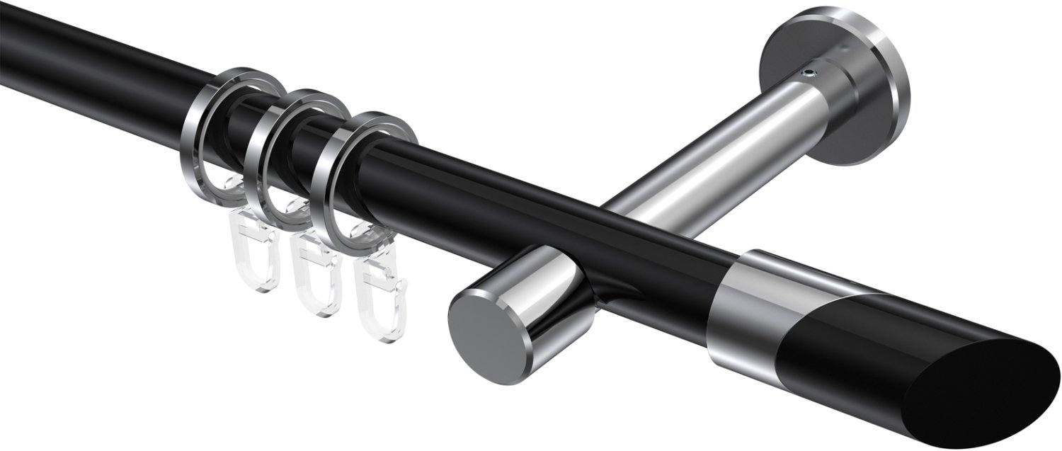 Gardinenstangen aus Metall in 20 mm Ø, 1-läufig, Modell PRESTIGE - Verano Schwarz / Chrom