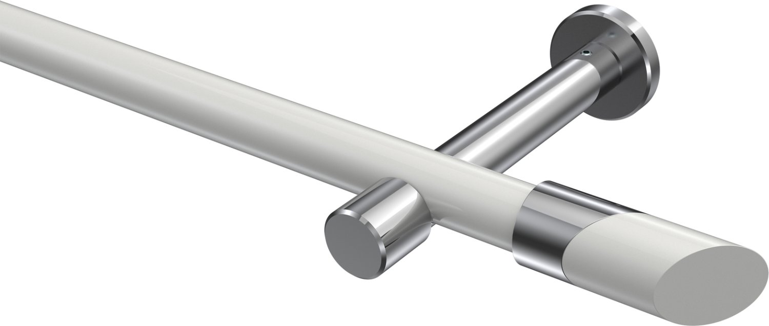 Gardinenstangen aus Metall in 20 mm Ø, 1-läufig, Modell PRESTIGE - Verano Weiß / Chrom (ohne Ringe)