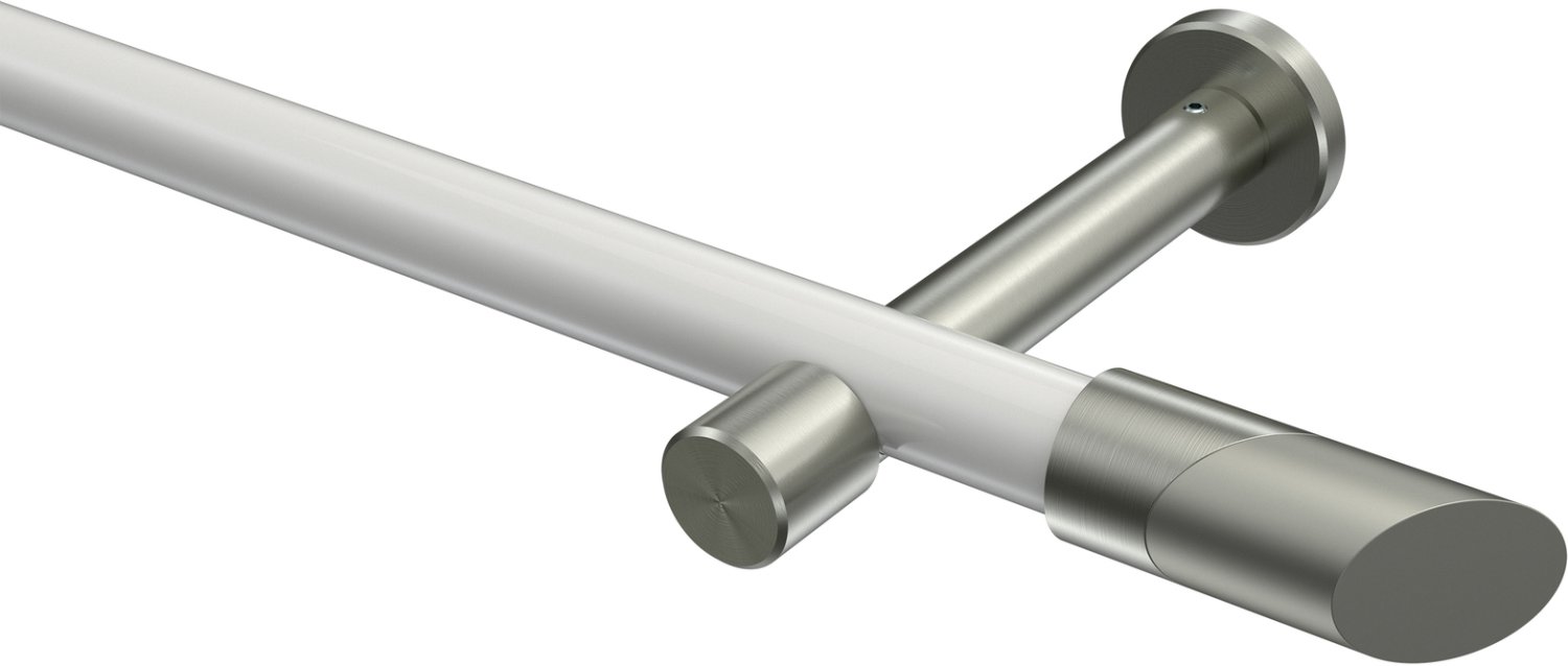 Informationen zu Gardinenstange Metall 20 mm Ø PRESTIGE - Verano Weiß / Edelstahl-Optik (ohne Ringe):