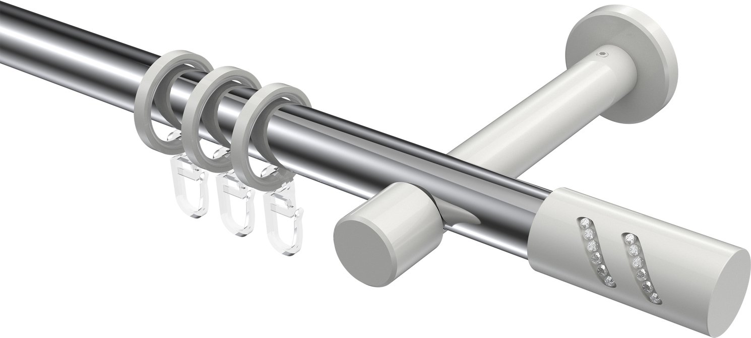 Gardinenstangen aus Metall in 20 mm Ø, 1-läufig, Modell PRESTIGE - Zoena Chrom / Weiß