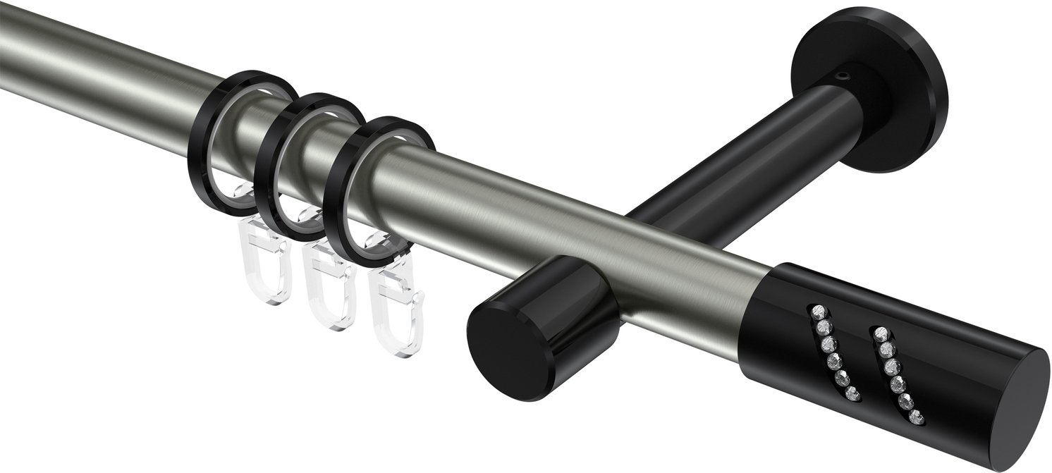 Gardinenstangen aus Metall in 20 mm Ø, 1-läufig, Modell PRESTIGE - Zoena Edelstahl-Optik / Schwarz