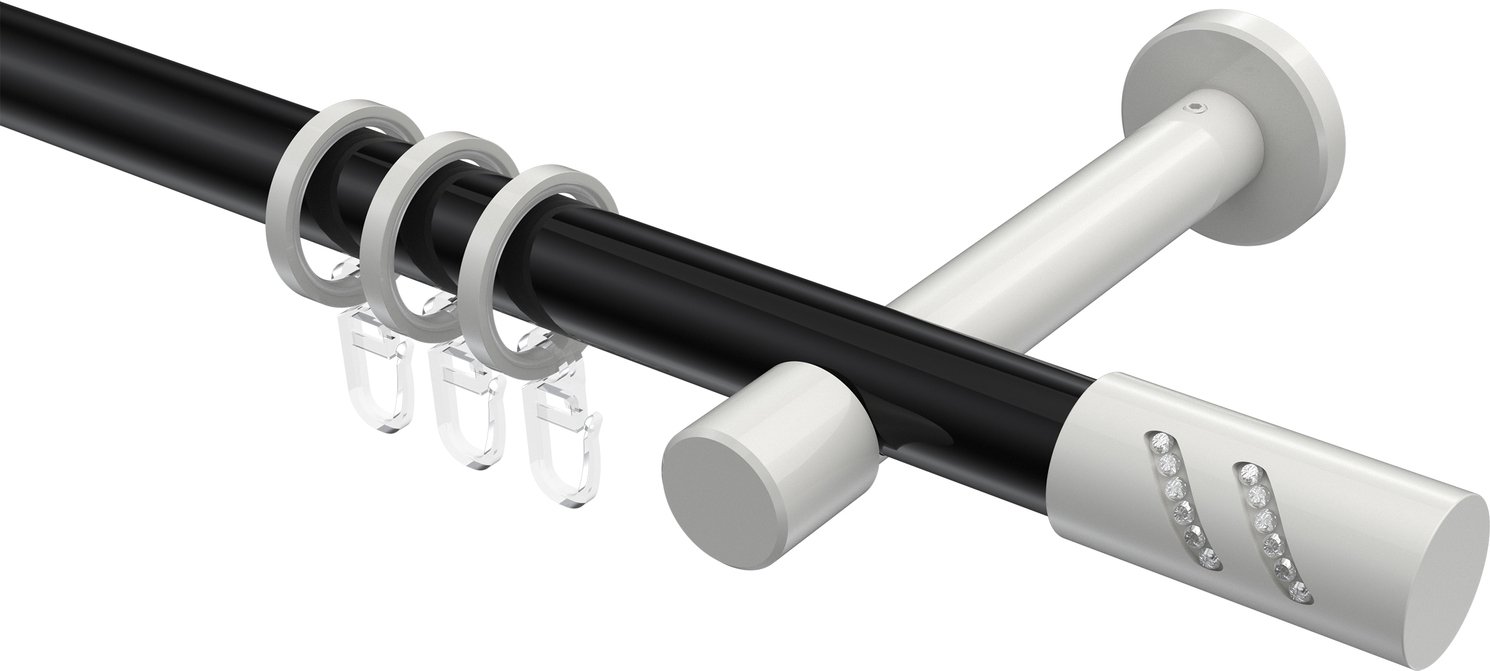 Gardinenstangen aus Metall in 20 mm Ø, 1-läufig, Modell PRESTIGE - Zoena Schwarz / Weiß
