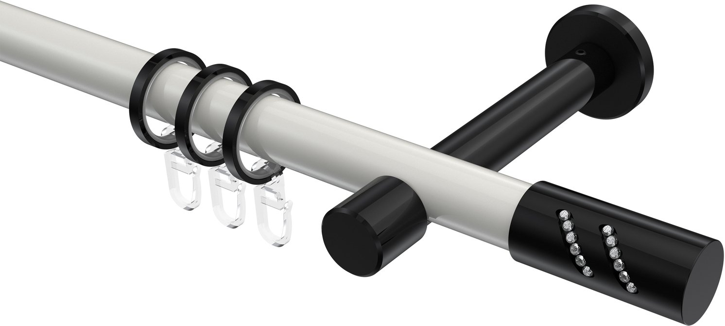 Gardinenstangen aus Metall in 20 mm Ø, 1-läufig, Modell PRESTIGE - Zoena Weiß / Schwarz