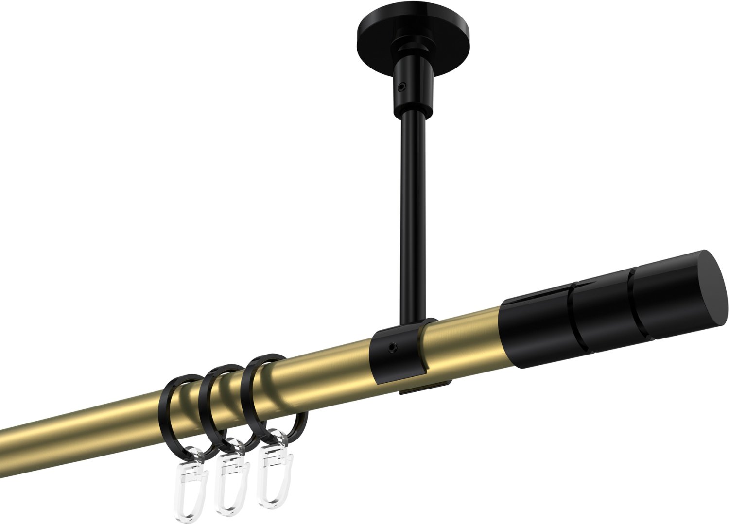 Gardinenstangen aus Metall in 20 mm Ø, 1-läufig, Modell SONETTE - Elanto Messing-Optik / Schwarz