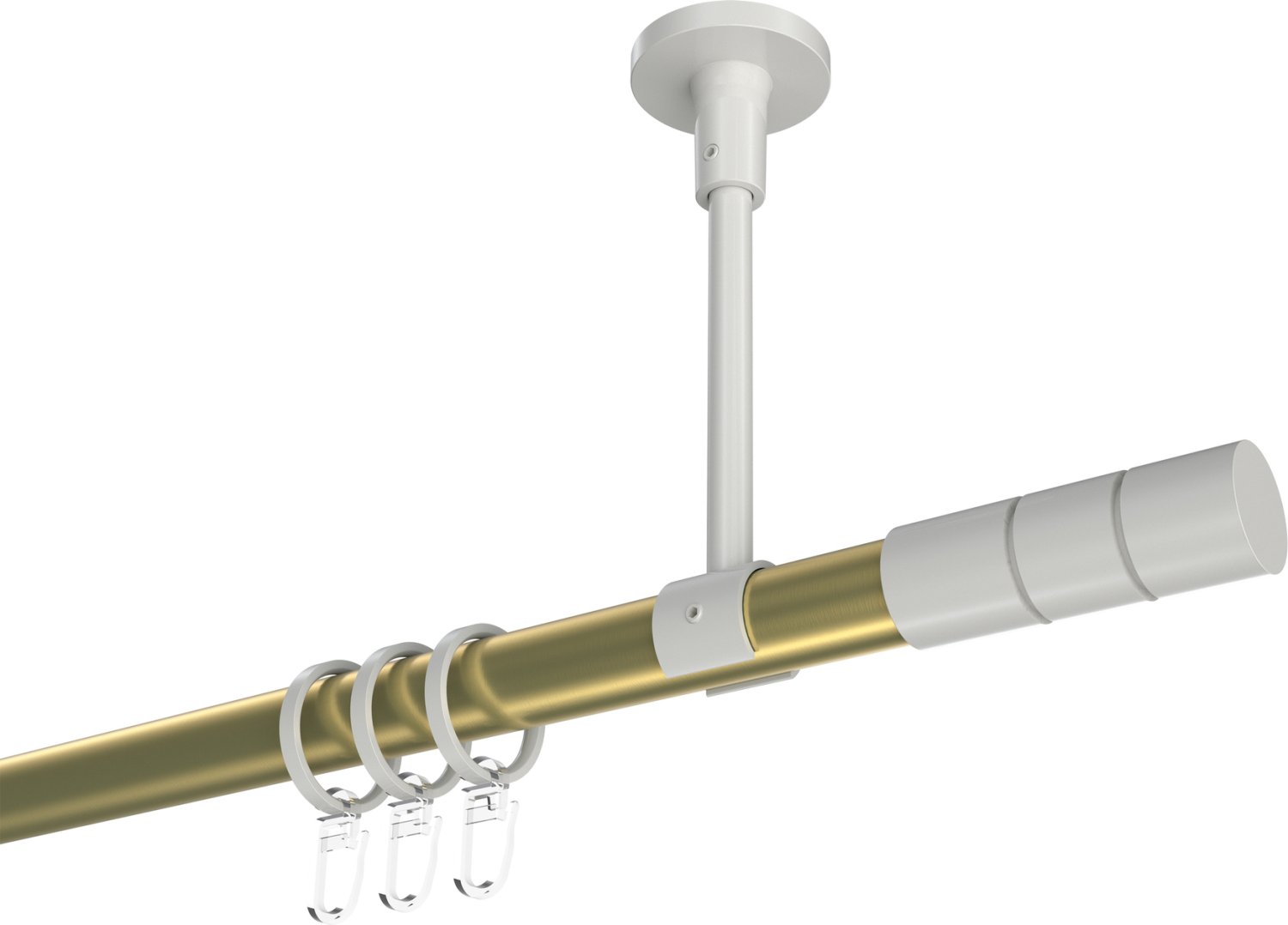 Gardinenstangen aus Metall in 20 mm Ø, 1-läufig, Modell SONETTE - Elanto Messing-Optik / Weiß