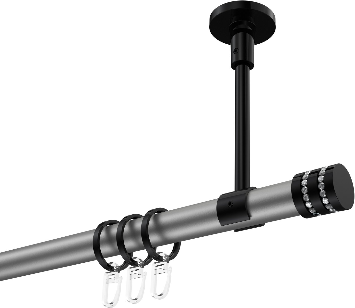 Gardinenstangen aus Metall in 20 mm Ø, 1-läufig, Modell SONETTE - Estana Silbergrau / Schwarz