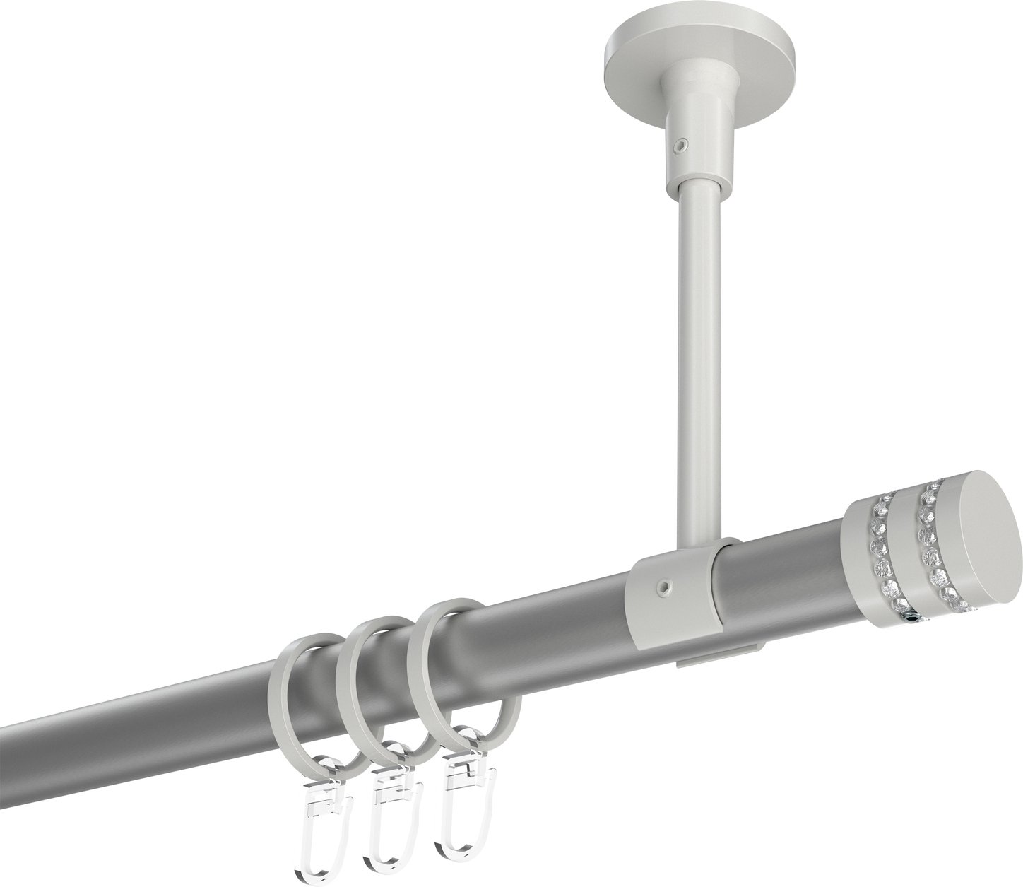 Gardinenstangen aus Metall in 20 mm Ø, 1-läufig, Modell SONETTE - Estana Silbergrau / Weiß