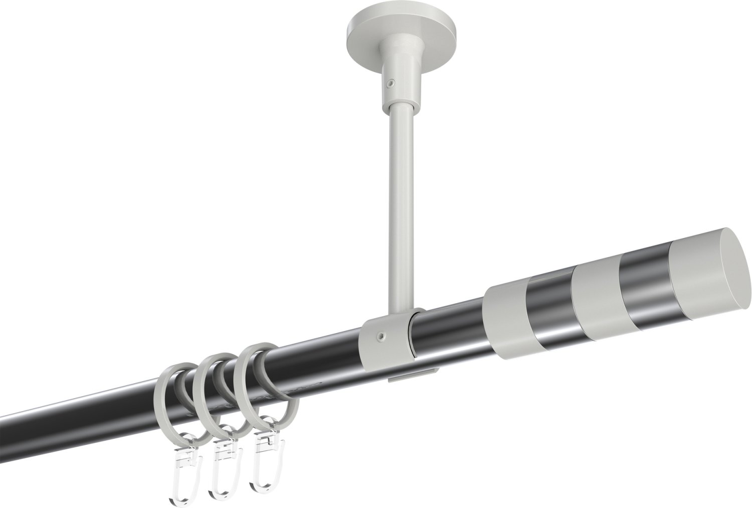 Gardinenstangen aus Metall in 20 mm Ø, 1-läufig, Modell SONETTE - Mavell Chrom / Weiß