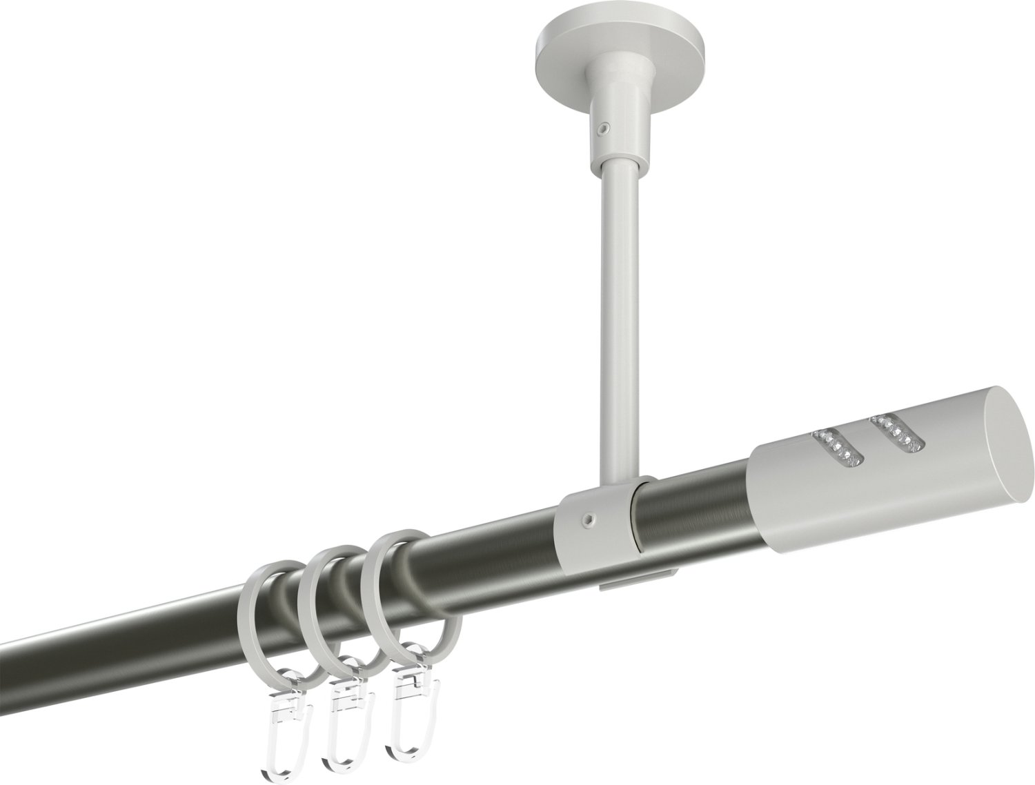 Informationen zu Gardinenstange Metall 20 mm Ø SONETTE - Zoena Edelstahl-Optik / Weiß: