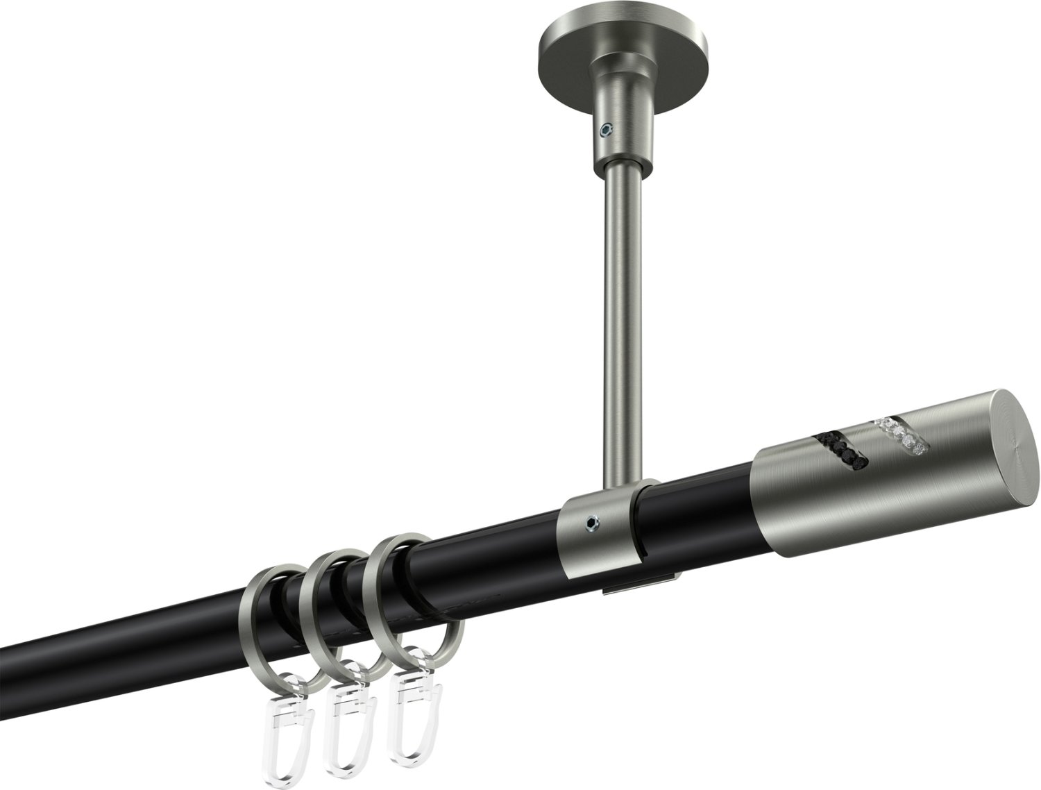Informationen zu Gardinenstange Metall 20 mm Ø SONETTE - Zoena Schwarz / Edelstahl-Optik: