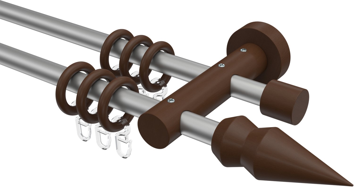 Gardinenstangen aus Metall / Holz in 16 mm Ø, 2-läufig, Modell ADRIAN - Doman Silbergrau / Nussbaum lackiert