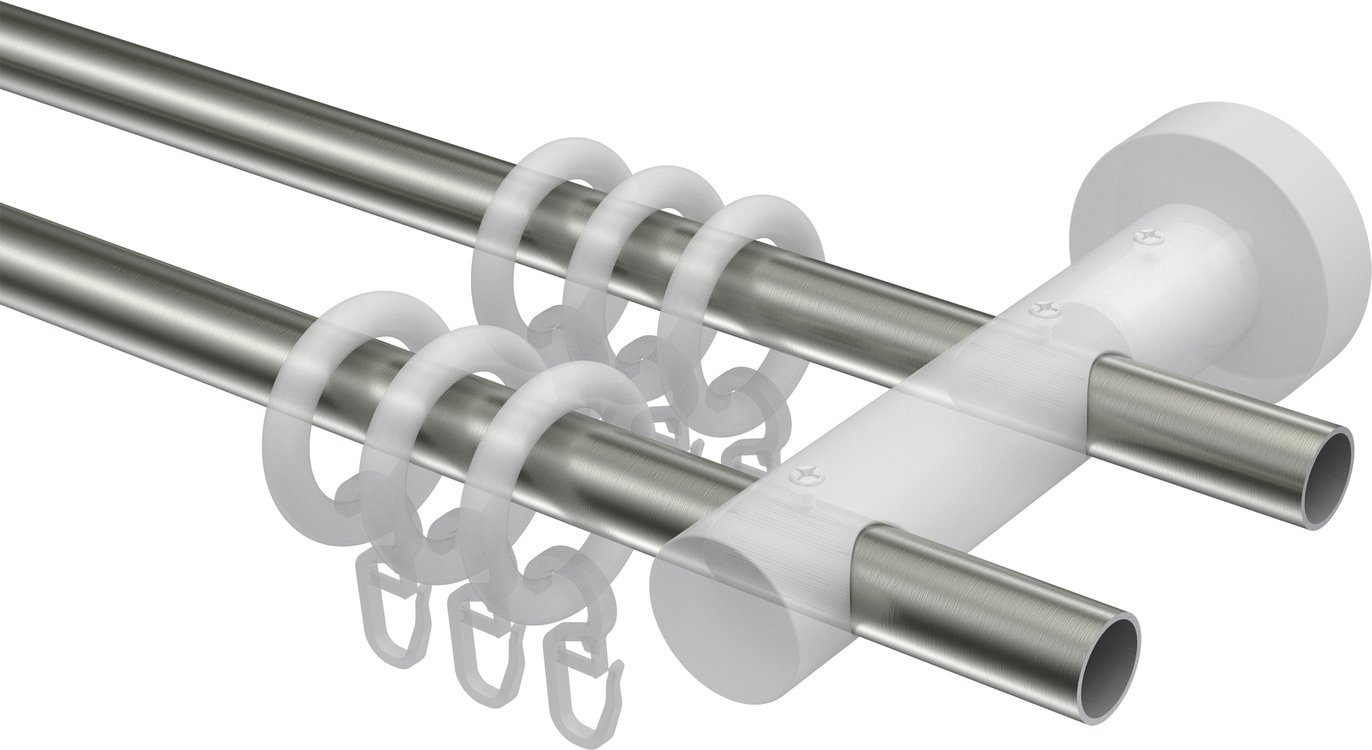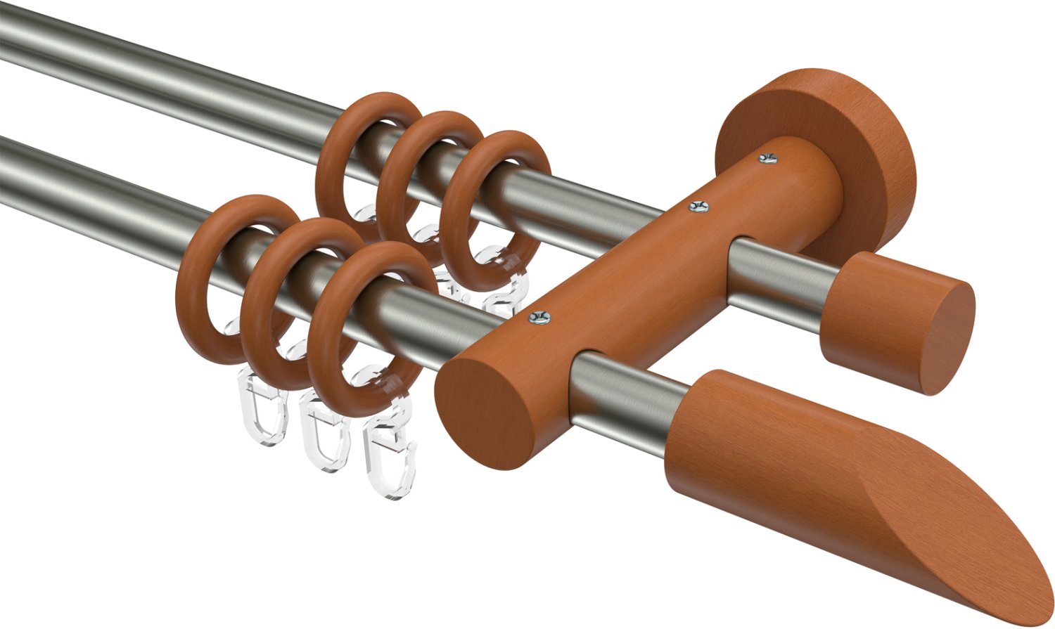 Gardinenstangen aus Metall / Holz in 16 mm Ø, 2-läufig, Modell ADRIAN - Franca Edelstahl-Optik / Kirschbaum lackiert