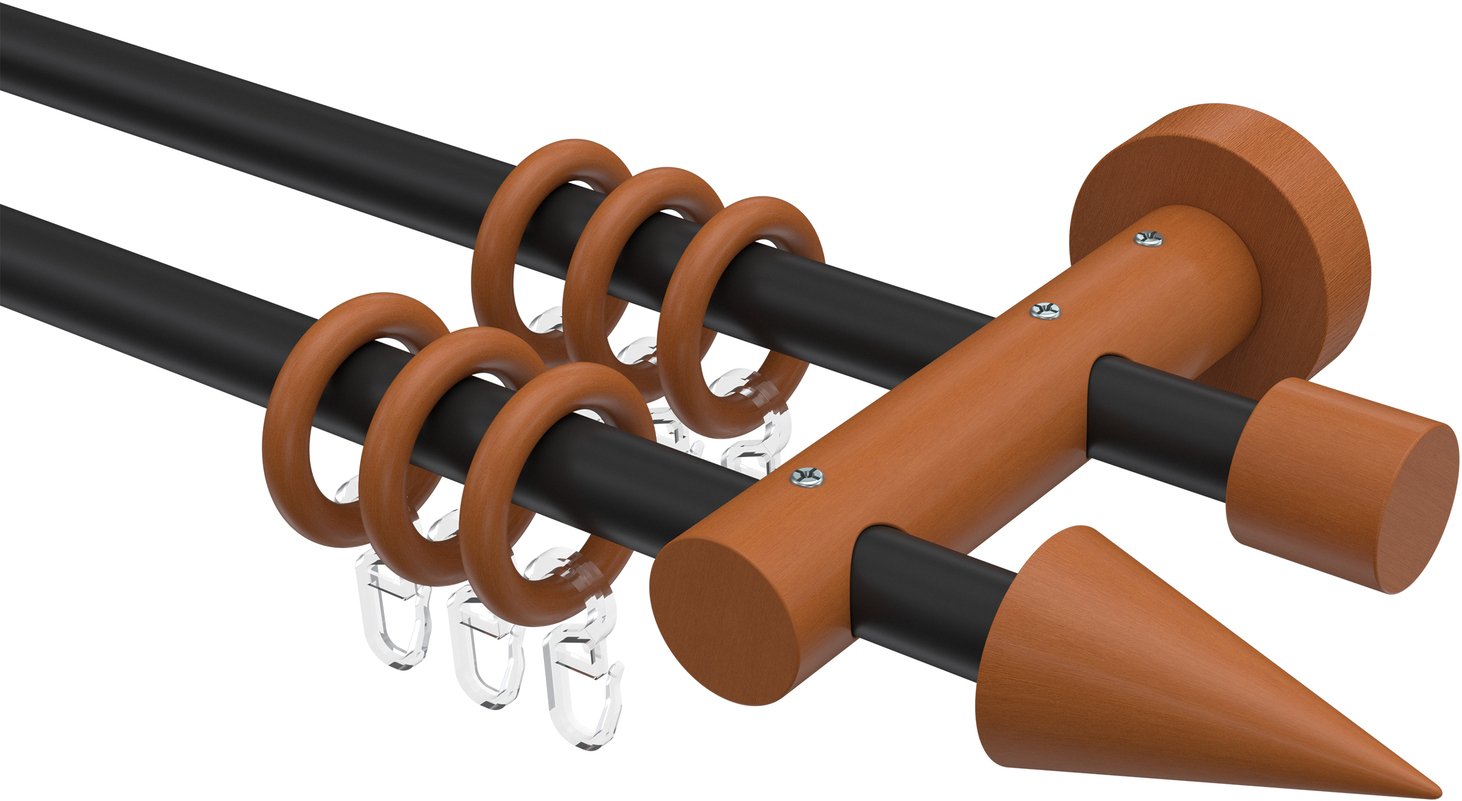 Gardinenstangen aus Metall / Holz in 16 mm Ø, 2-läufig, Modell ADRIAN - Holly Schwarz / Kirschbaum lackiert