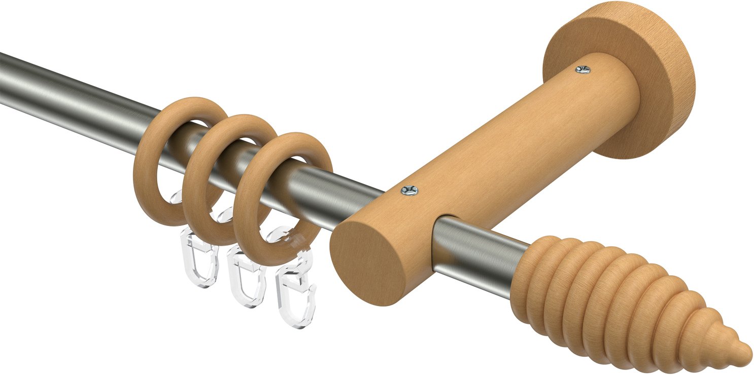Informationen zu Gardinenstange Metall / Holz 16 mm Ø ADRIAN - Asta Edelstahl-Optik / Buche lackiert: