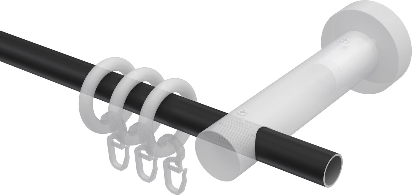 Stilvoll und modern, passt sich unsere einläufige Vorhanggarnitur Modell ADRIAN - Doman mit 16 mm Ø jedem Raum mit den unterschiedlichsten Einrichtungsstilen an. Die erstklassige Verarbeitung von unseren einläufigen Gardinenstangen sowie die Verwendung von hochwertigen Materialien wie Metall / Holz bei diesem Produkt verweist auf eine gute Stabilität sowie eine lange Lebensdauer. Das moderne Design von diesen Vorhangstangen wird bei der Fensterdekoration neben den Gardinen eine ganz besondere Rolle spielen. Setzen Sie bei der Fenstergestaltung Ihre eigenen Ideen um und verwenden Sie zum Anbringen der Gardinen unsere Vorhanggarnitur in Schwarz (Rundrohre) / Nussbaum lackiert (Zubehör). Unsere Gardinenstangen Modell ADRIAN - Doman können über vielen Fenstern und Balkontüren unterschiedlichster Breiten angebracht werden, da wir diese in vielen unterschiedlichen Größen anbieten. Diese Vorhanggarnitur Modell ADRIAN - Doman lässt sich ohne viel Aufwand montieren. Auch das anschließende Aufhängen der Gardinen ist ausgesprochen unkompliziert und einfach zu handhaben. Das Angebot von diesen Gardinenstangen enthält ein komplett konfektioniertes Set inklusive des Befestigungszubehörs. Auch das zum Anbringen der Gardinen und Vorhänge benötigte Gardinenzubehör ist im Lieferumfang von unseren Vorhangstangen inbegriffen.