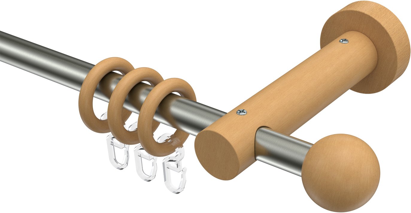 Informationen zu Gardinenstange Metall / Holz 16 mm Ø ADRIAN - Geo Edelstahl-Optik / Buche lackiert: