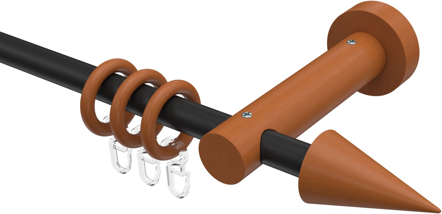 Gardinenstangen aus Metall / Holz in 16 mm Ø, 1-läufig, Modell ADRIAN - Holly Schwarz / Kirschbaum lackiert