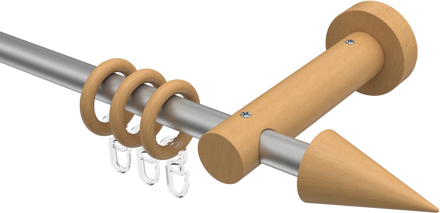 Gardinenstangen aus Metall / Holz in 16 mm Ø, 1-läufig, Modell ADRIAN - Holly Silbergrau / Buche lackiert