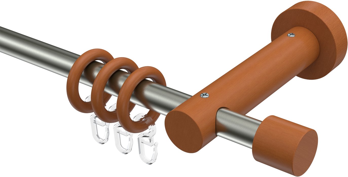 Informationen zu Gardinenstange Metall / Holz 16 mm Ø ADRIAN - Pin Edelstahl-Optik / Kirschbaum lackiert: