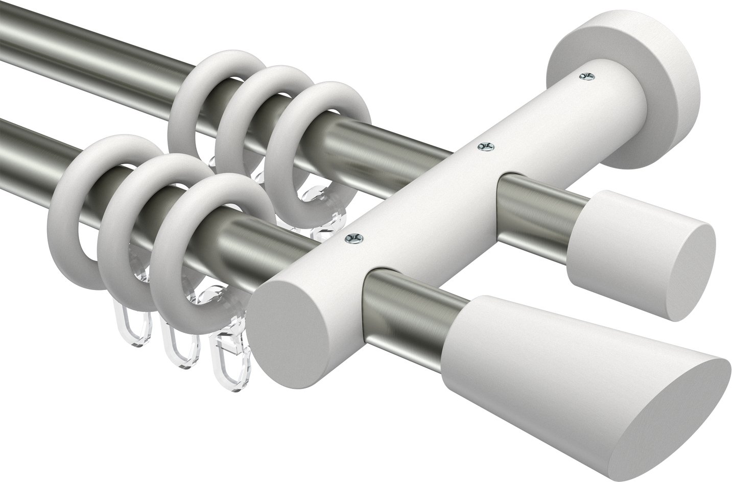 Gardinenstangen aus Metall / Holz in 20 mm Ø, 2-läufig, Modell TALENA - Bero Edelstahl-Optik / Weiß lackiert