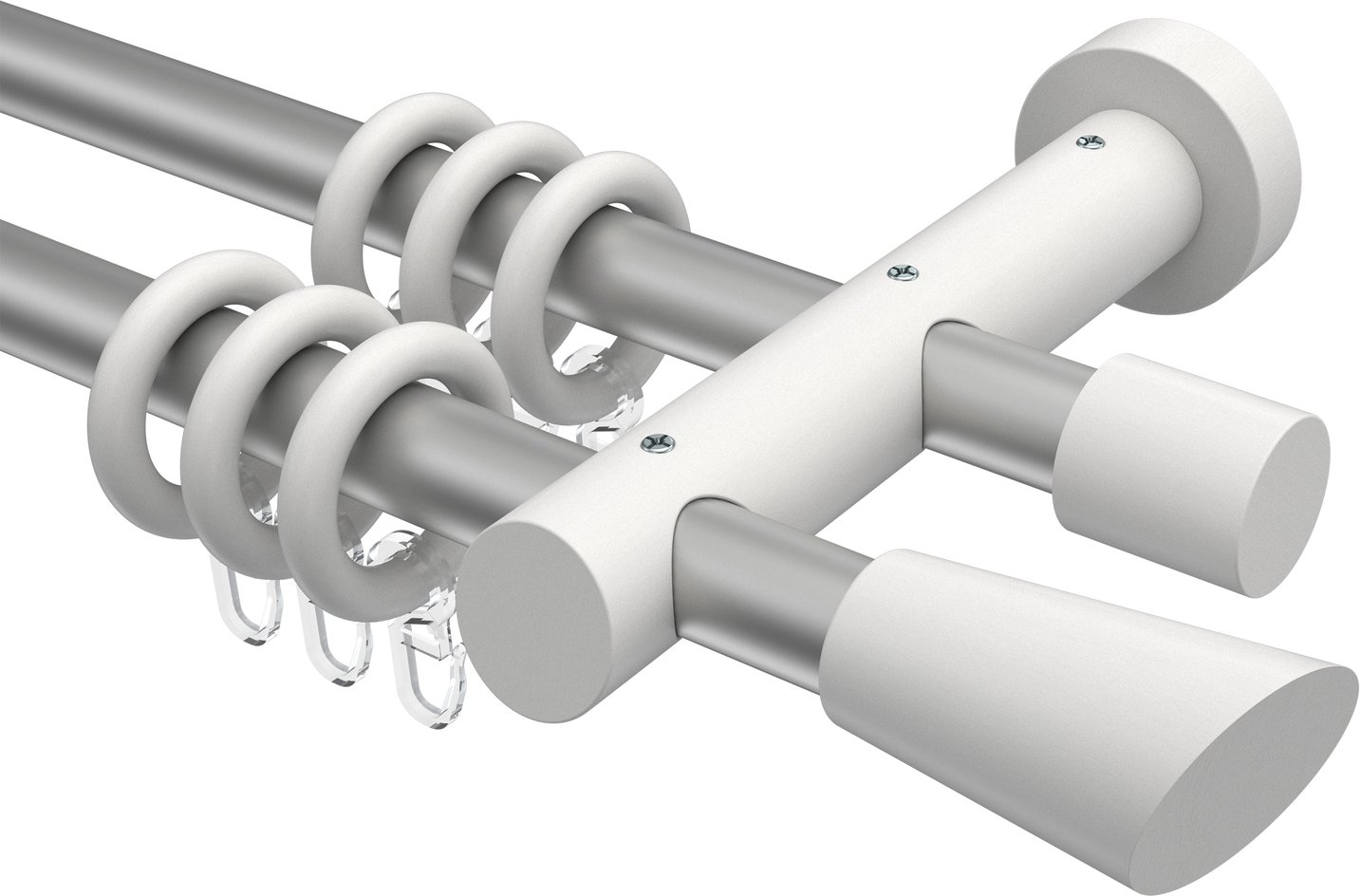 Gardinenstangen aus Metall / Holz in 20 mm Ø, 2-läufig, Modell TALENA - Bero Silbergrau / Weiß lackiert