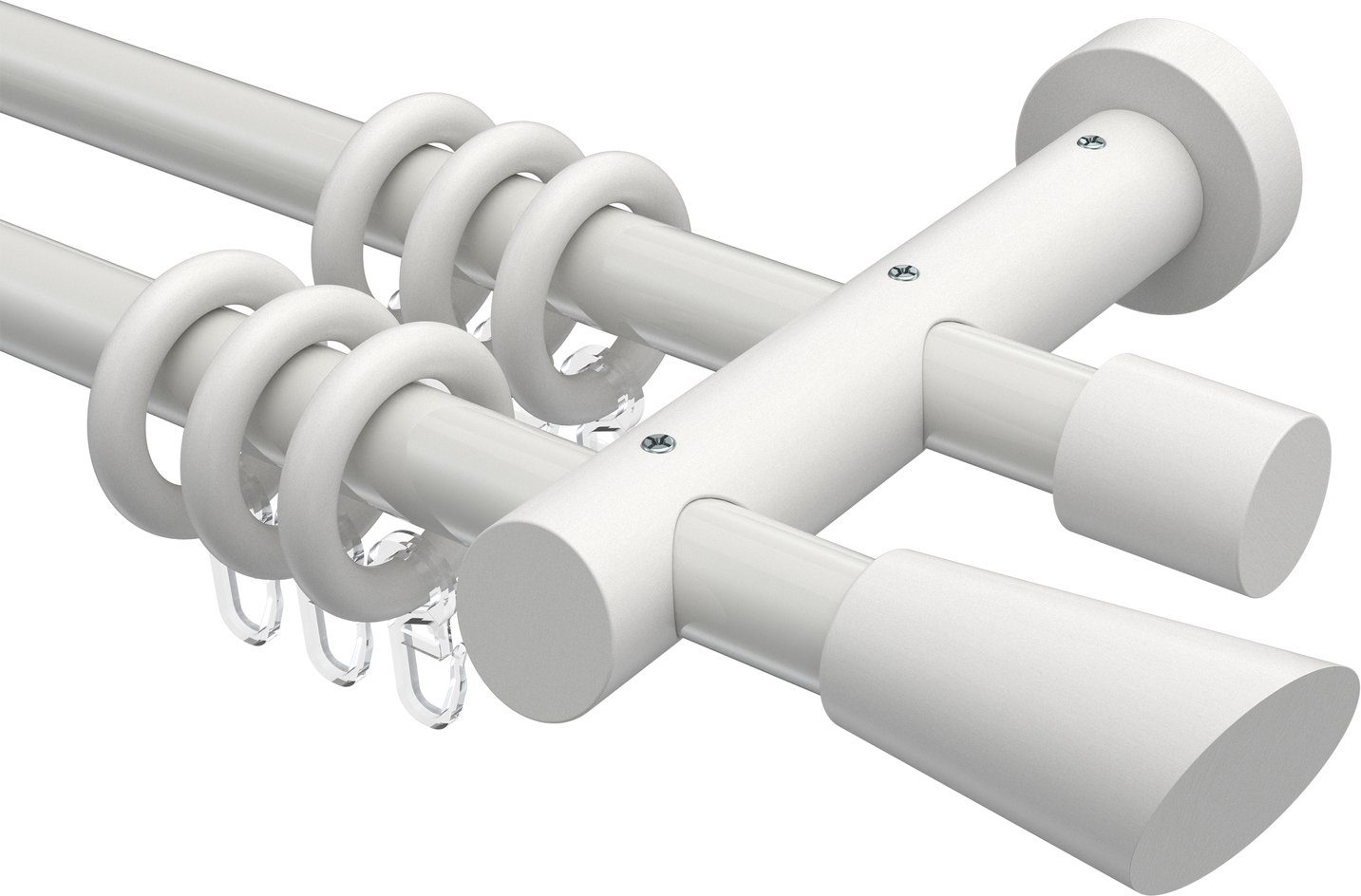 Gardinenstangen aus Metall / Holz in 20 mm Ø, 2-läufig, Modell TALENA - Bero Weiß lackiert