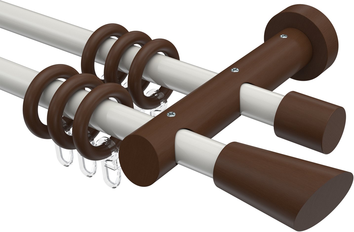 Gardinenstangen aus Metall / Holz in 20 mm Ø, 2-läufig, Modell TALENA - Bero Weiß / Nussbaum lackiert