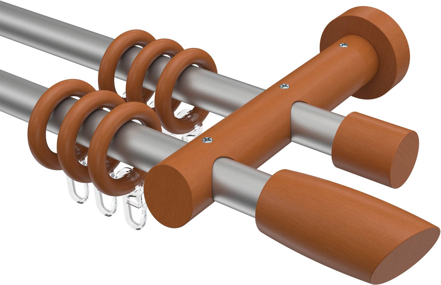 Gardinenstangen aus Metall / Holz in 20 mm Ø, 2-läufig, Modell TALENA - Etta Silbergrau / Kirschbaum lackiert