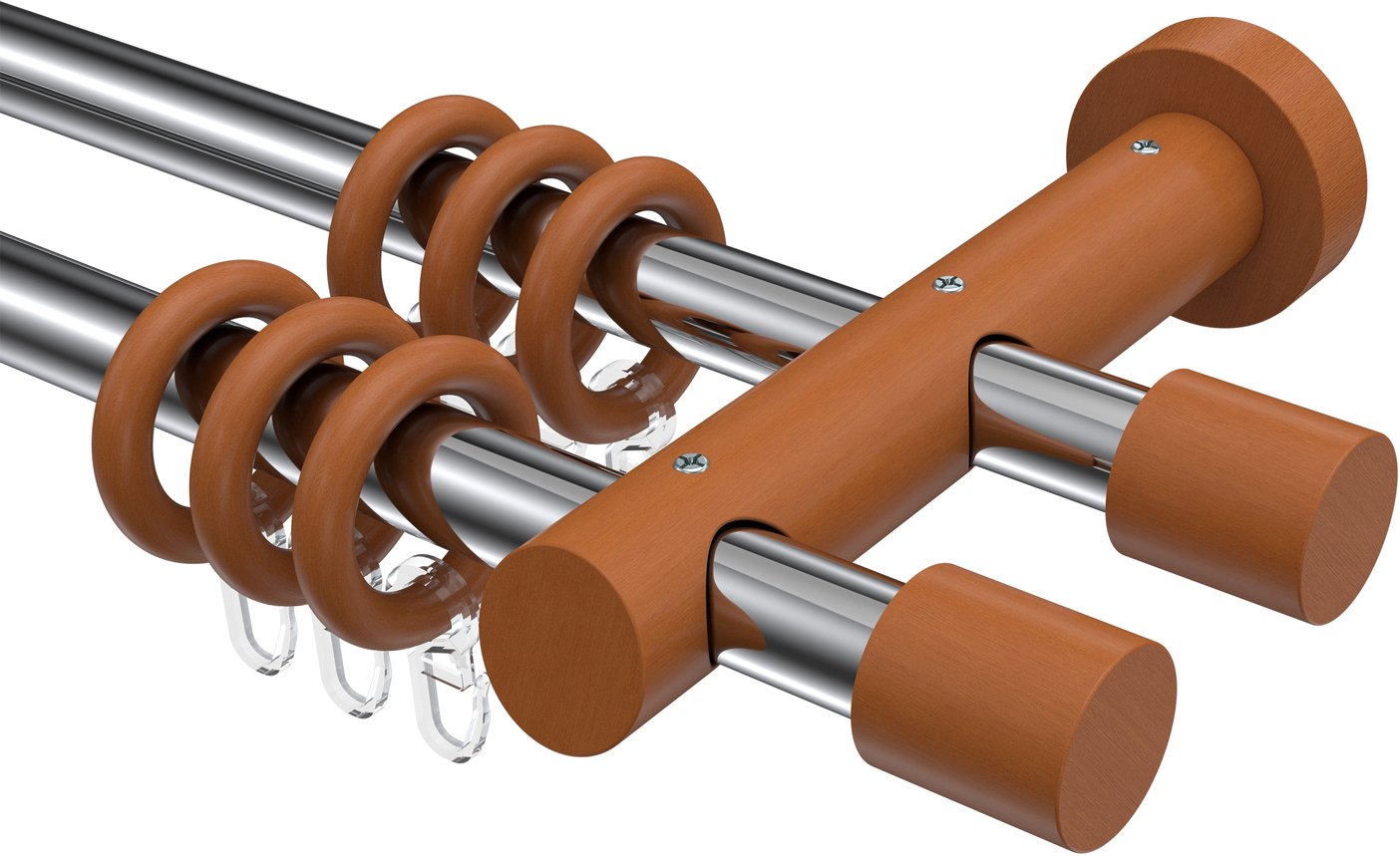 Gardinenstangen aus Metall / Holz in 20 mm Ø, 2-läufig, Modell TALENA - Feta Chrom / Kirschbaum lackiert