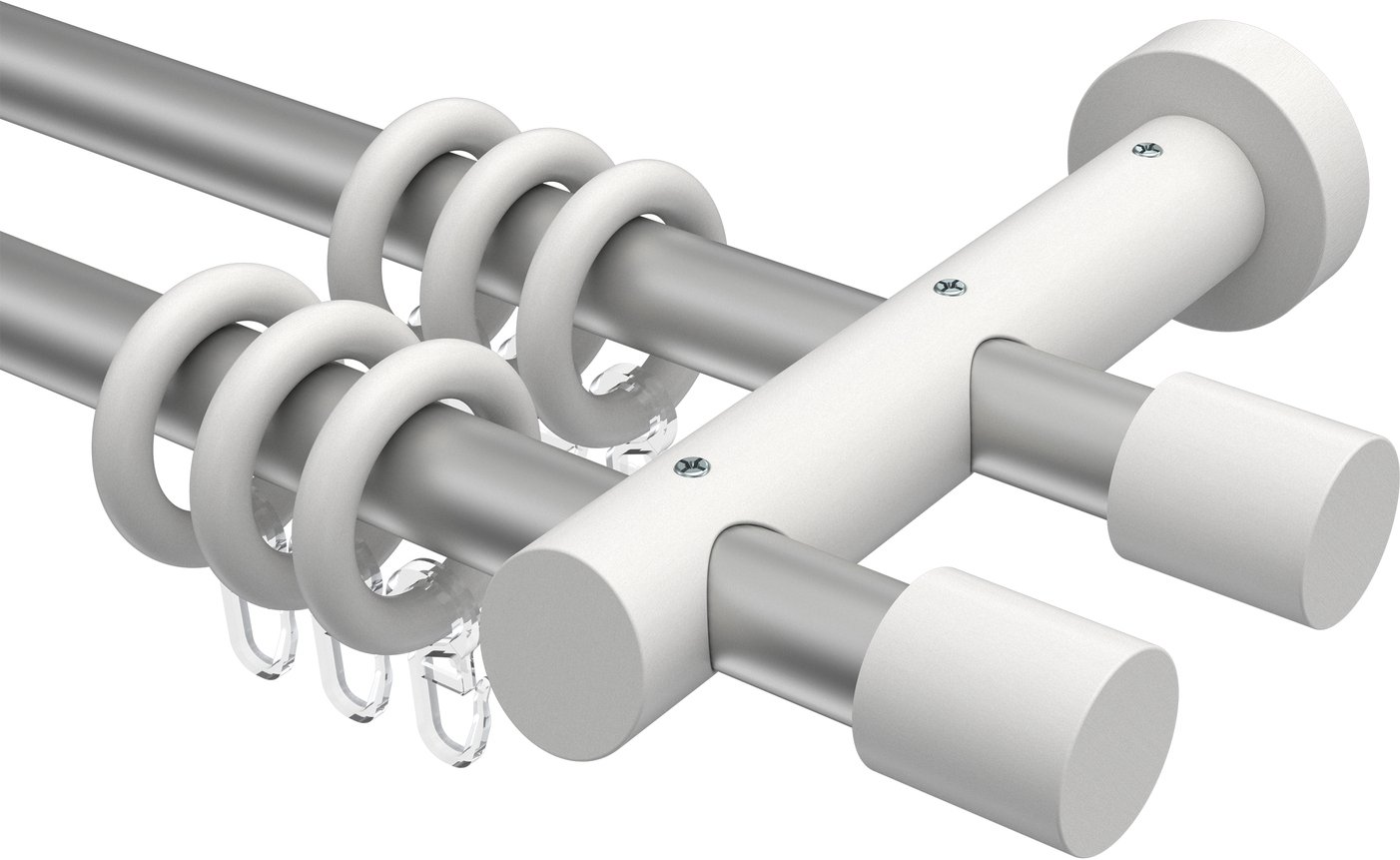 Informationen zu Gardinenstange Metall / Holz 20 mm Ø 2-läufig TALENA - Feta Silbergrau / Weiß lackiert: