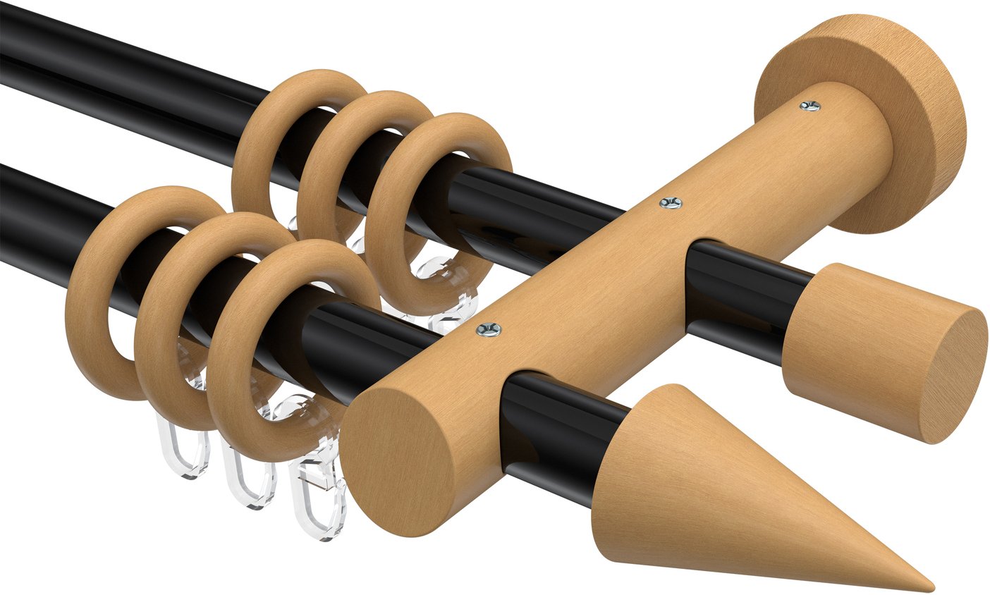 Gardinenstangen aus Metall / Holz in 20 mm Ø, 2-läufig, Modell TALENA - Siveo Schwarz / Buche lackiert