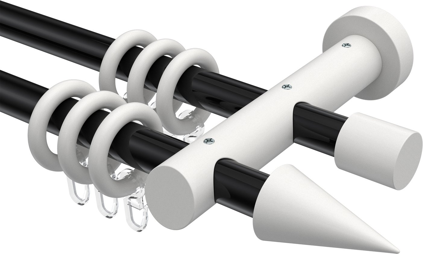 Gardinenstangen aus Metall / Holz in 20 mm Ø, 2-läufig, Modell TALENA - Siveo Schwarz / Weiß lackiert