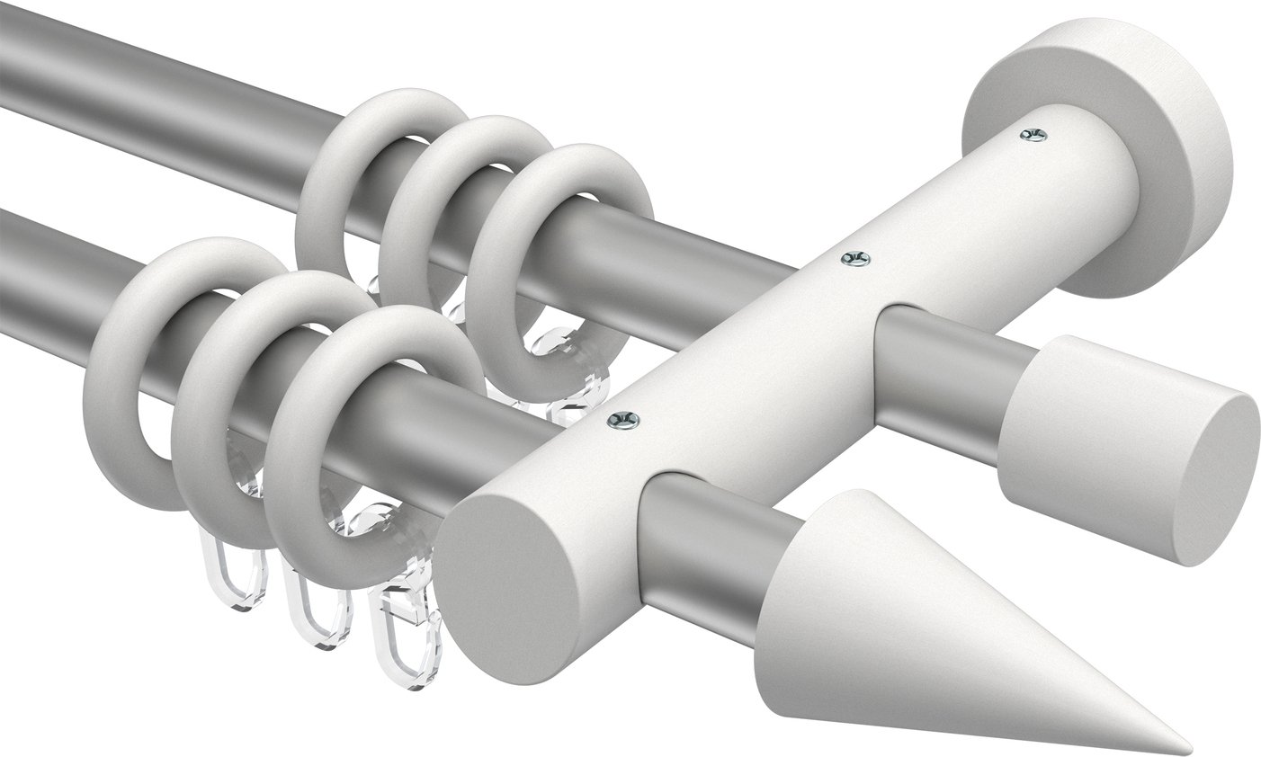 Informationen zu Gardinenstange Metall / Holz 20 mm Ø 2-läufig TALENA - Siveo Silbergrau / Weiß lackiert:
