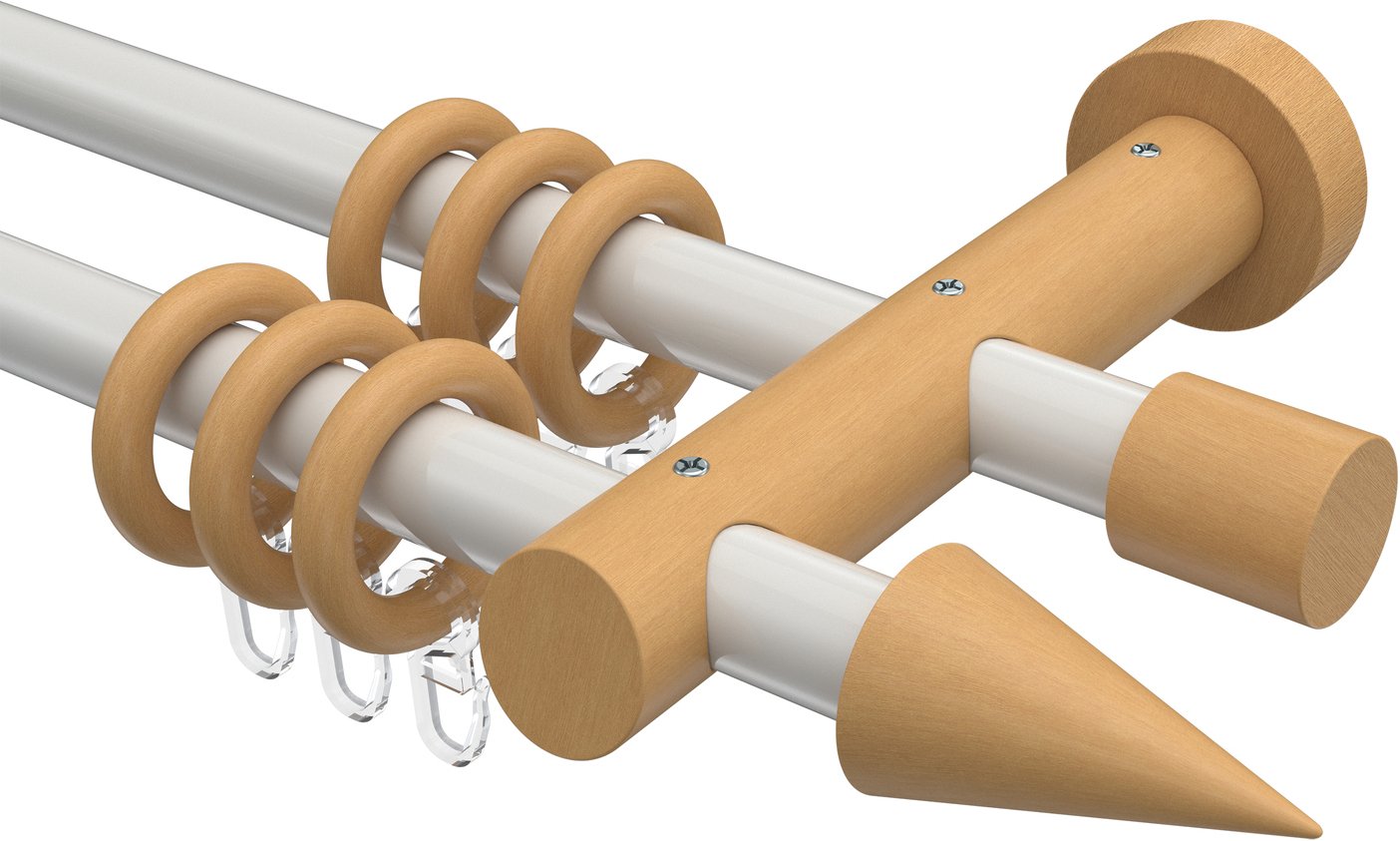 Gardinenstangen aus Metall / Holz in 20 mm Ø, 2-läufig, Modell TALENA - Siveo Weiß / Buche lackiert