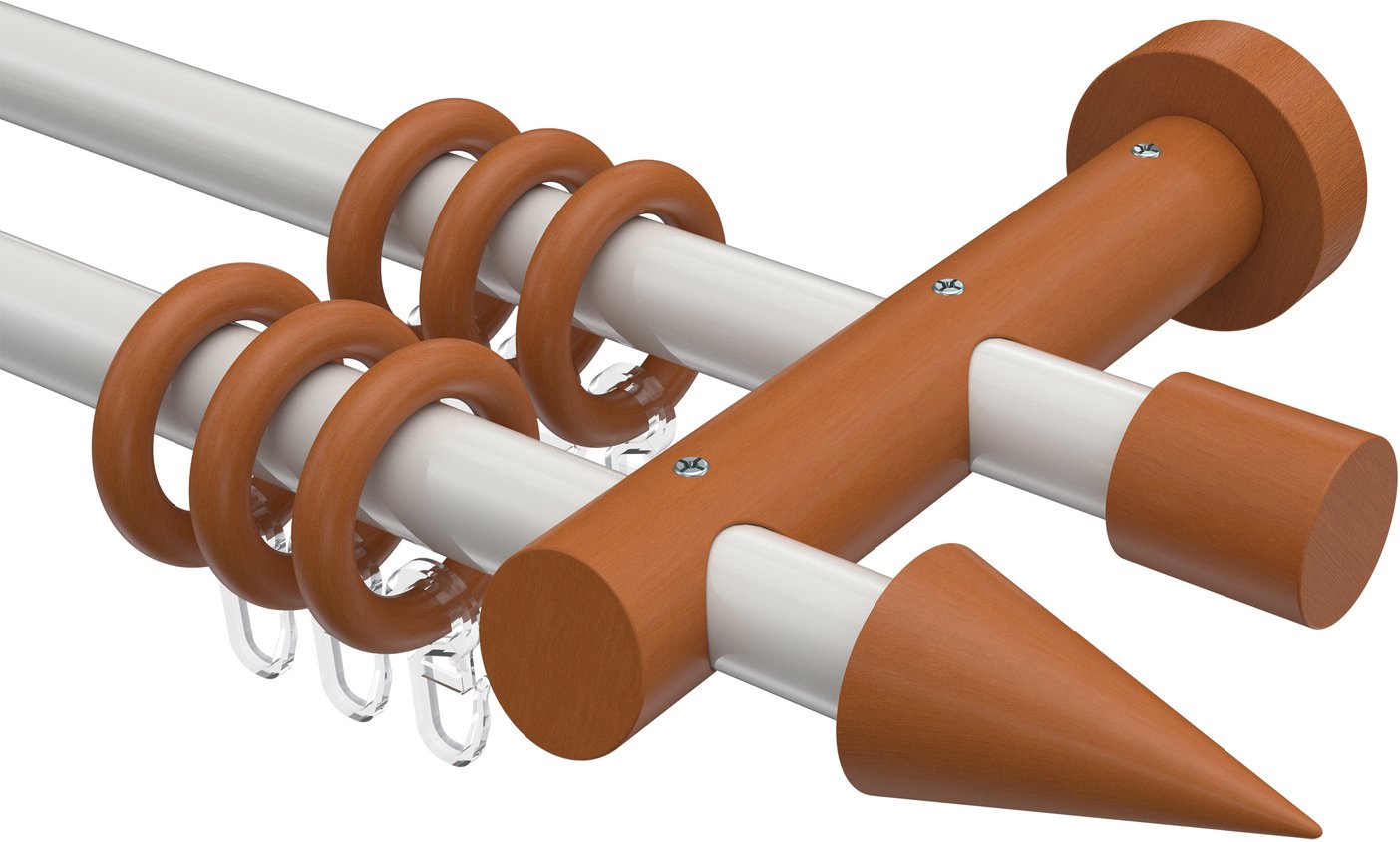 Gardinenstangen aus Metall / Holz in 20 mm Ø, 2-läufig, Modell TALENA - Siveo Weiß / Kirschbaum lackiert