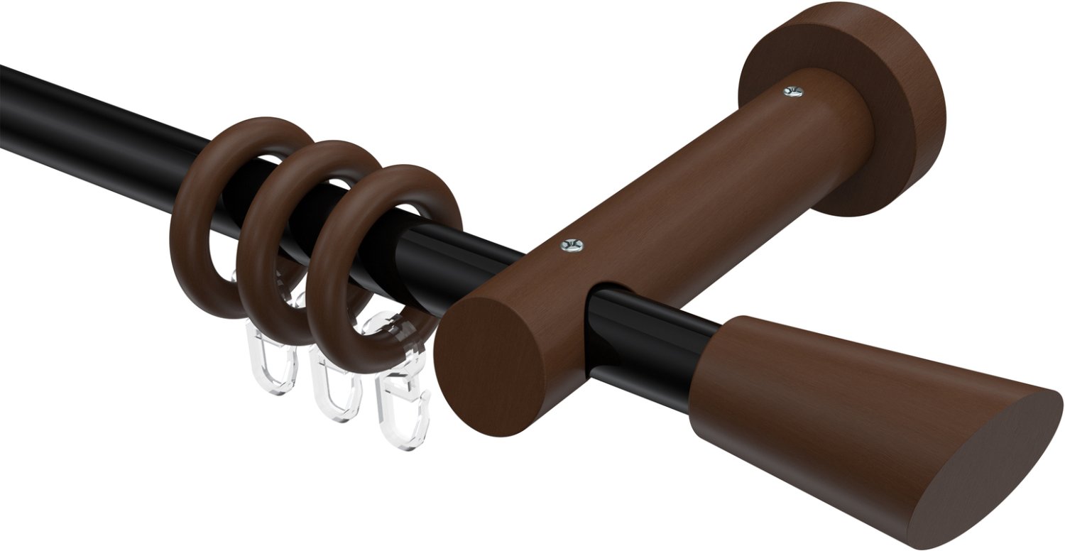 Gardinenstangen aus Metall / Holz in 20 mm Ø, 1-läufig, Modell TALENA - Bero Schwarz / Nussbaum lackiert