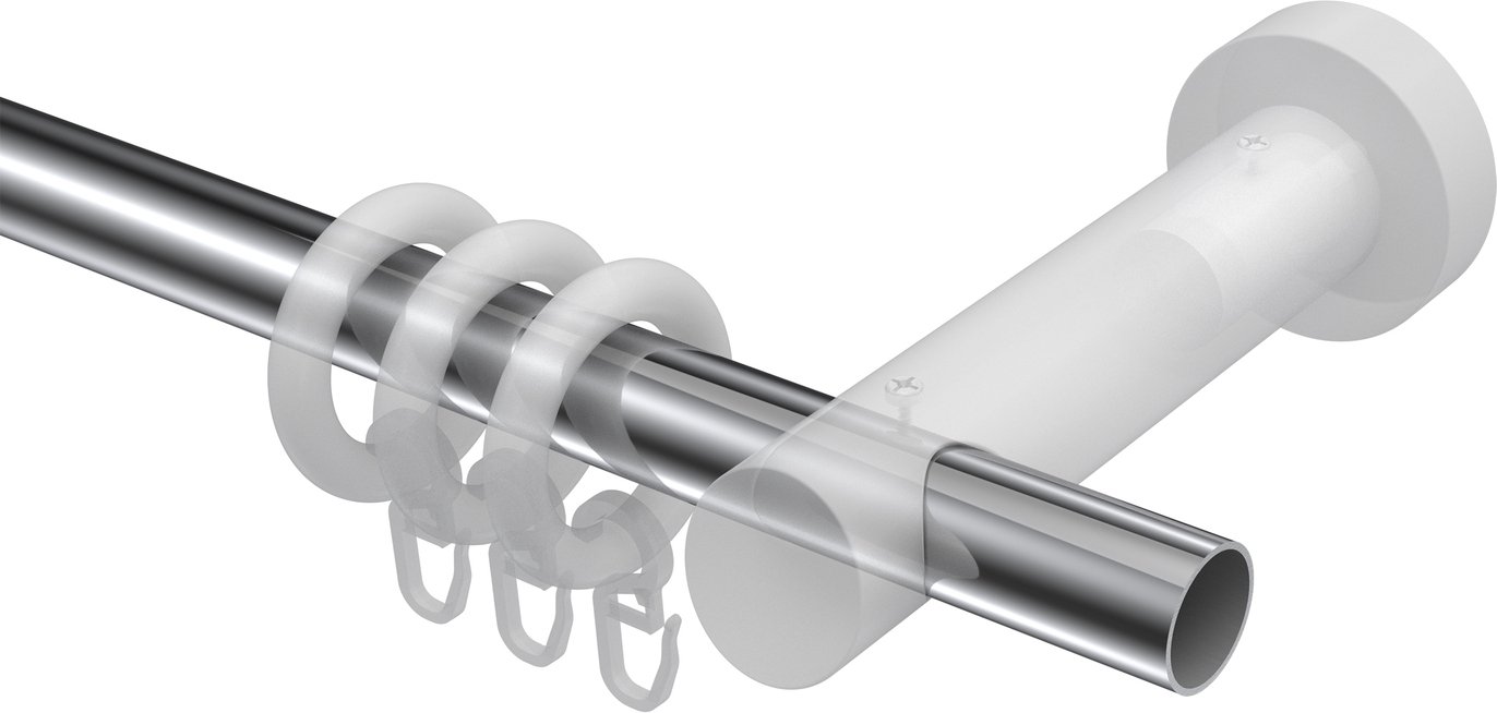 Gardinenstangen aus Metall / Holz in 20 mm Ø, 1-läufig, Modell TALENA - Etta Chrom / Nussbaum lackiert