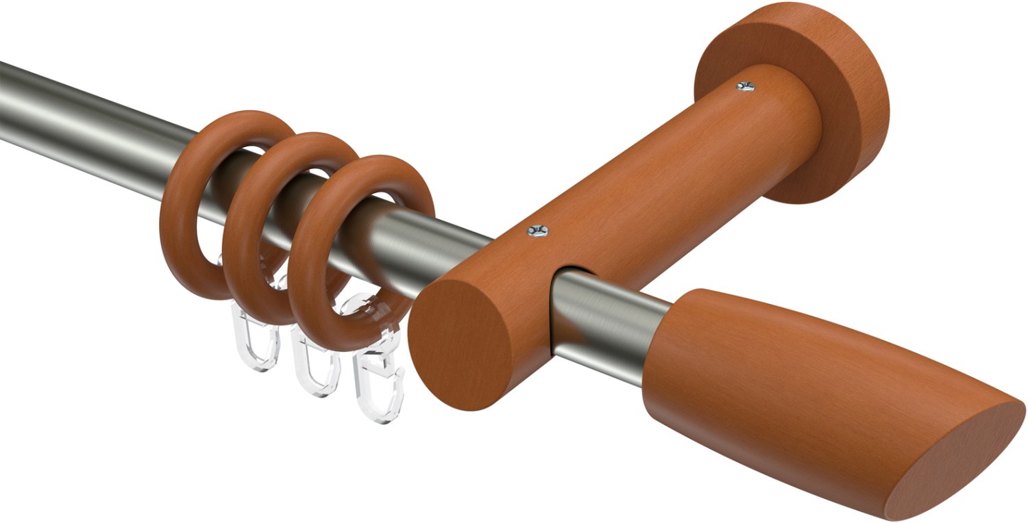 Gardinenstangen aus Metall / Holz in 20 mm Ø, 1-läufig, Modell TALENA - Etta Edelstahl-Optik / Kirschbaum lackiert