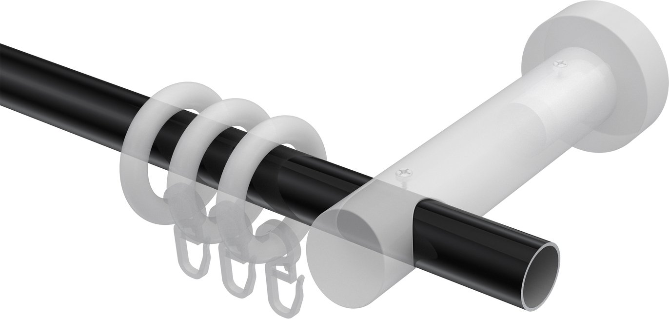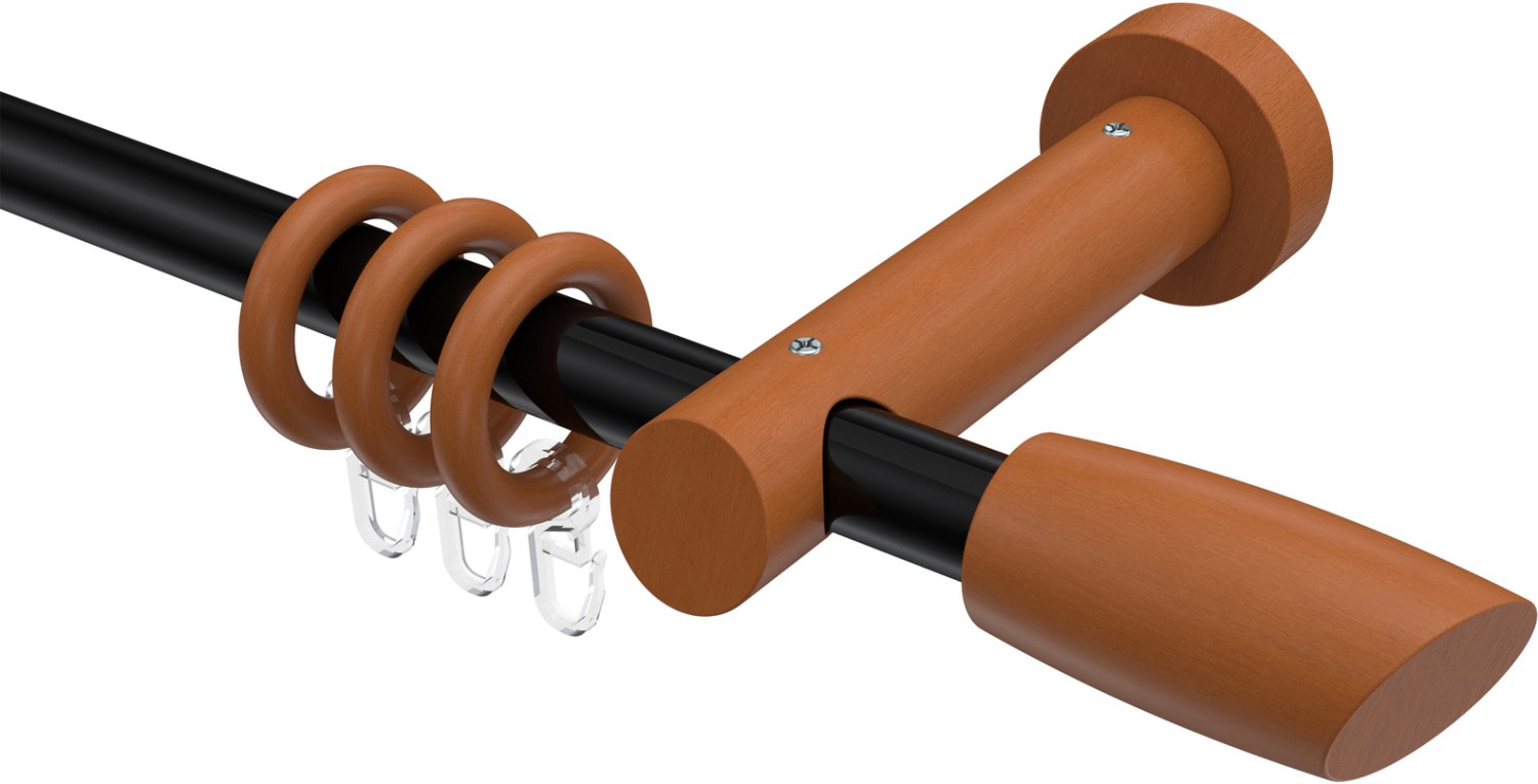 Gardinenstangen aus Metall / Holz in 20 mm Ø, 1-läufig, Modell TALENA - Etta Schwarz / Kirschbaum lackiert