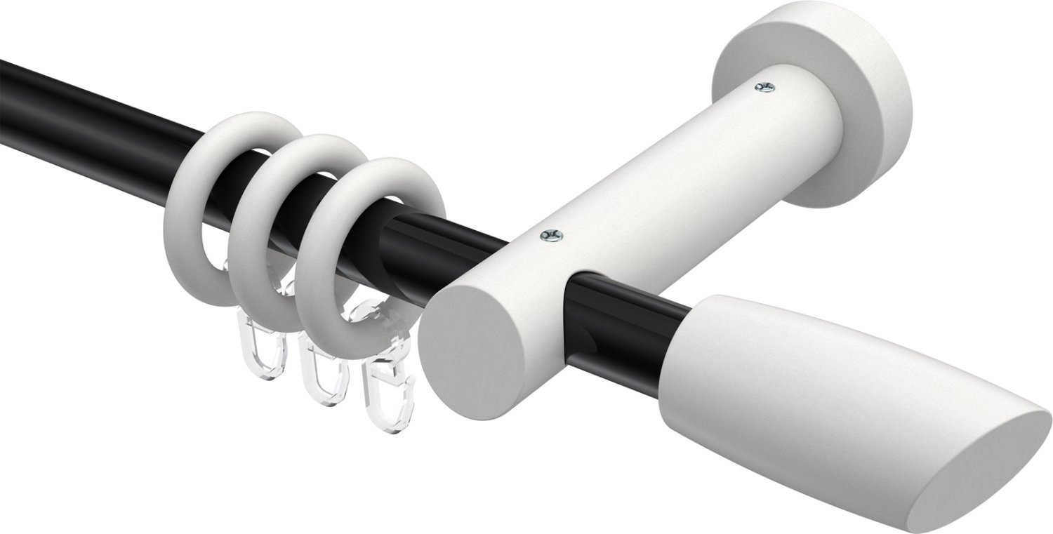 Gardinenstangen aus Metall / Holz in 20 mm Ø, 1-läufig, Modell TALENA - Etta Schwarz / Weiß lackiert