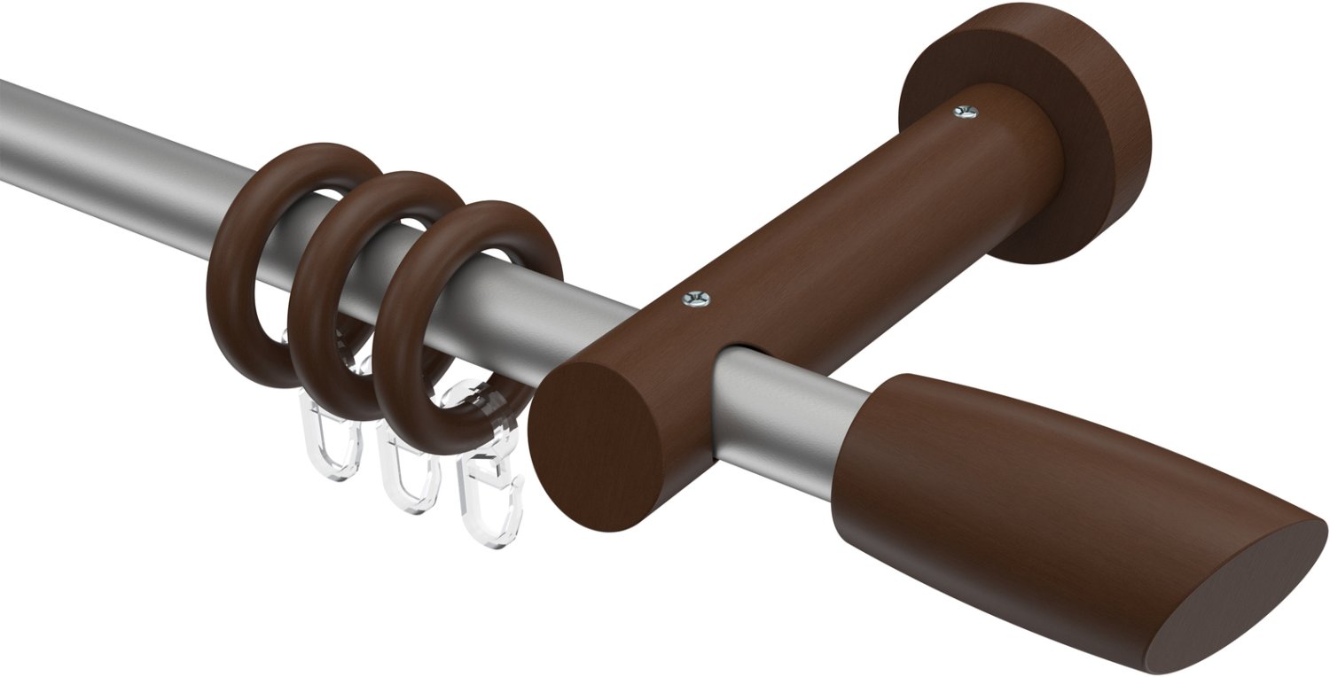 Gardinenstangen aus Metall / Holz in 20 mm Ø, 1-läufig, Modell TALENA - Etta Silbergrau / Nussbaum lackiert