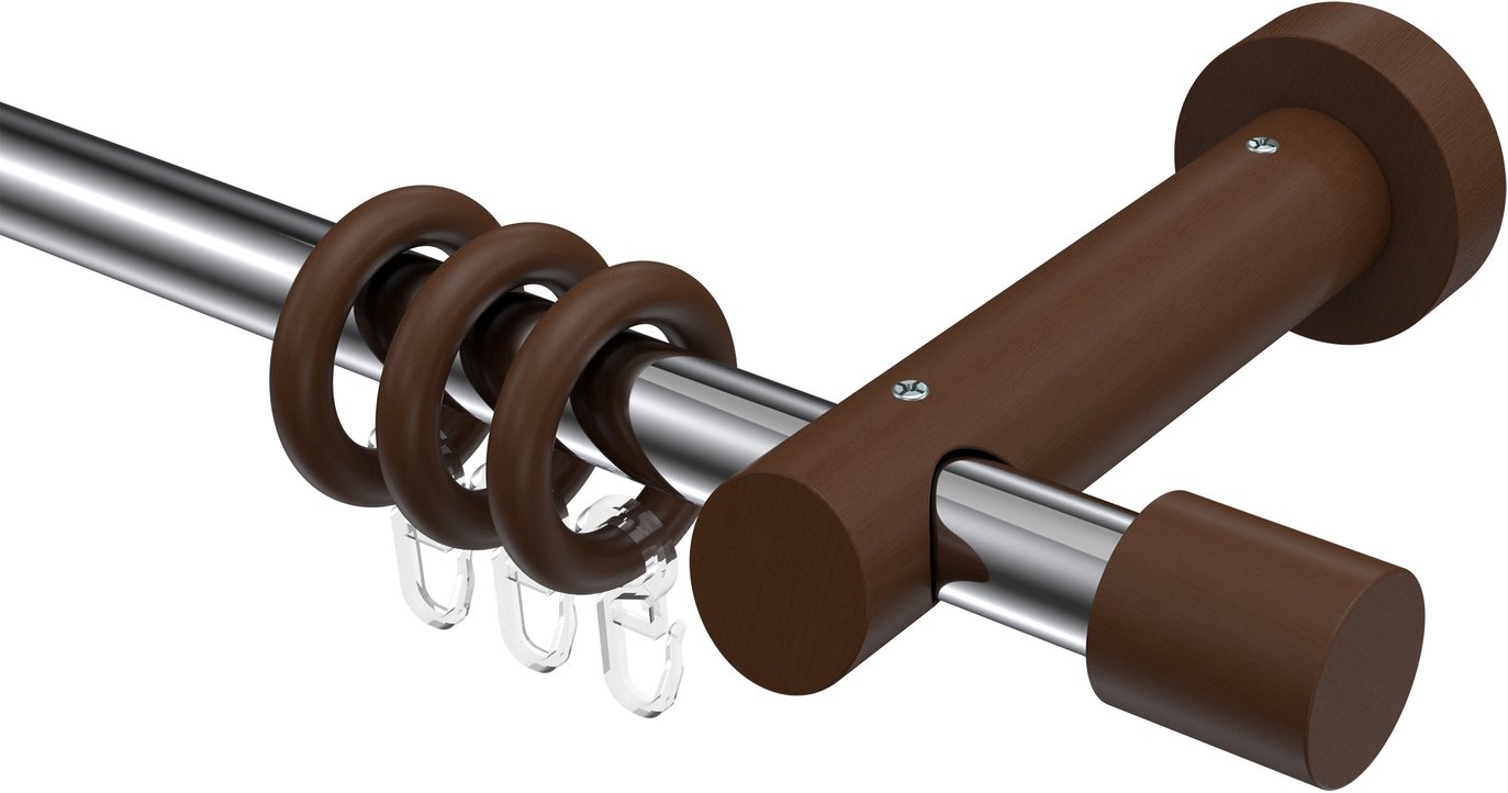 Gardinenstangen aus Metall / Holz in 20 mm Ø, 1-läufig, Modell TALENA - Feta Chrom / Nussbaum lackiert