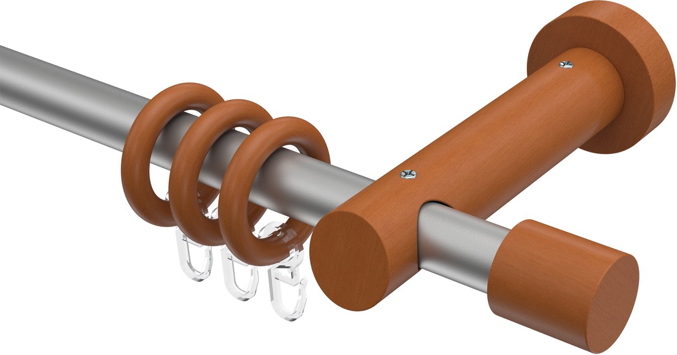 Gardinenstangen aus Metall / Holz in 20 mm Ø, 1-läufig, Modell TALENA - Feta Silbergrau / Kirschbaum lackiert