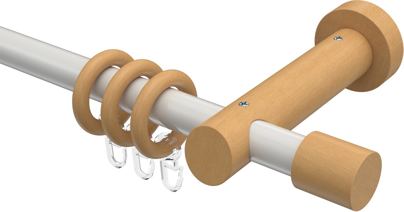 Gardinenstangen aus Metall / Holz in 20 mm Ø, 1-läufig, Modell TALENA - Feta Weiß lackiert / Buche lackiert