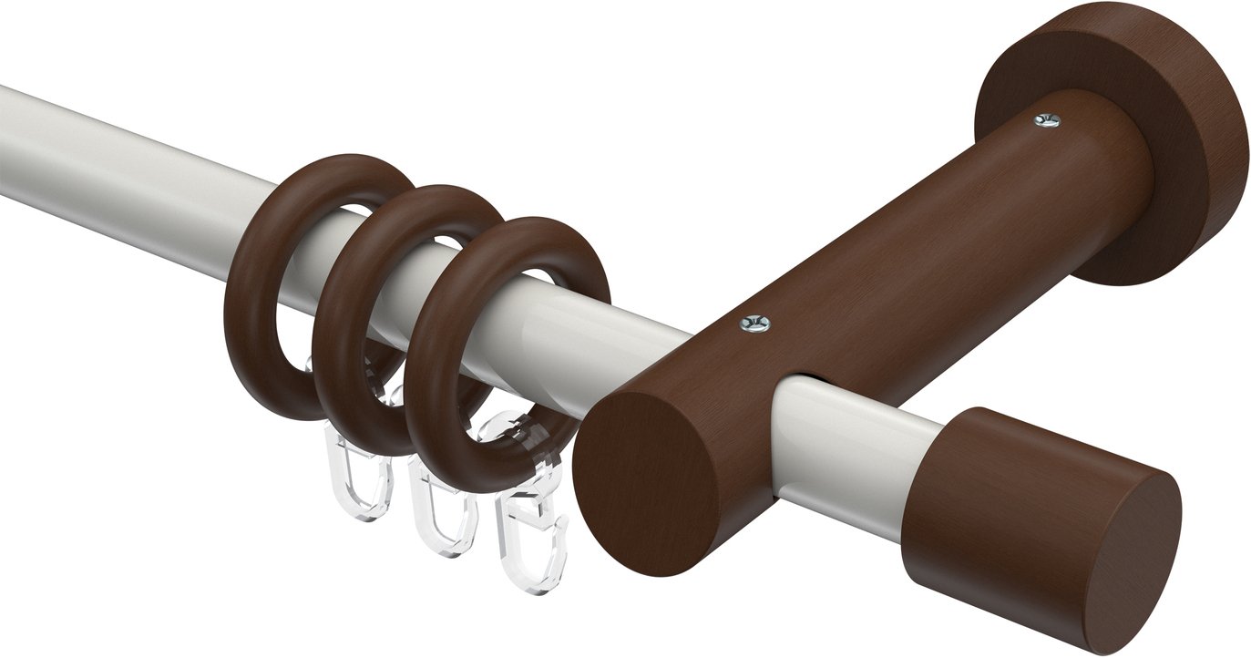 Gardinenstangen aus Metall / Holz in 20 mm Ø, 1-läufig, Modell TALENA - Feta Weiß lackiert / Nussbaum lackiert