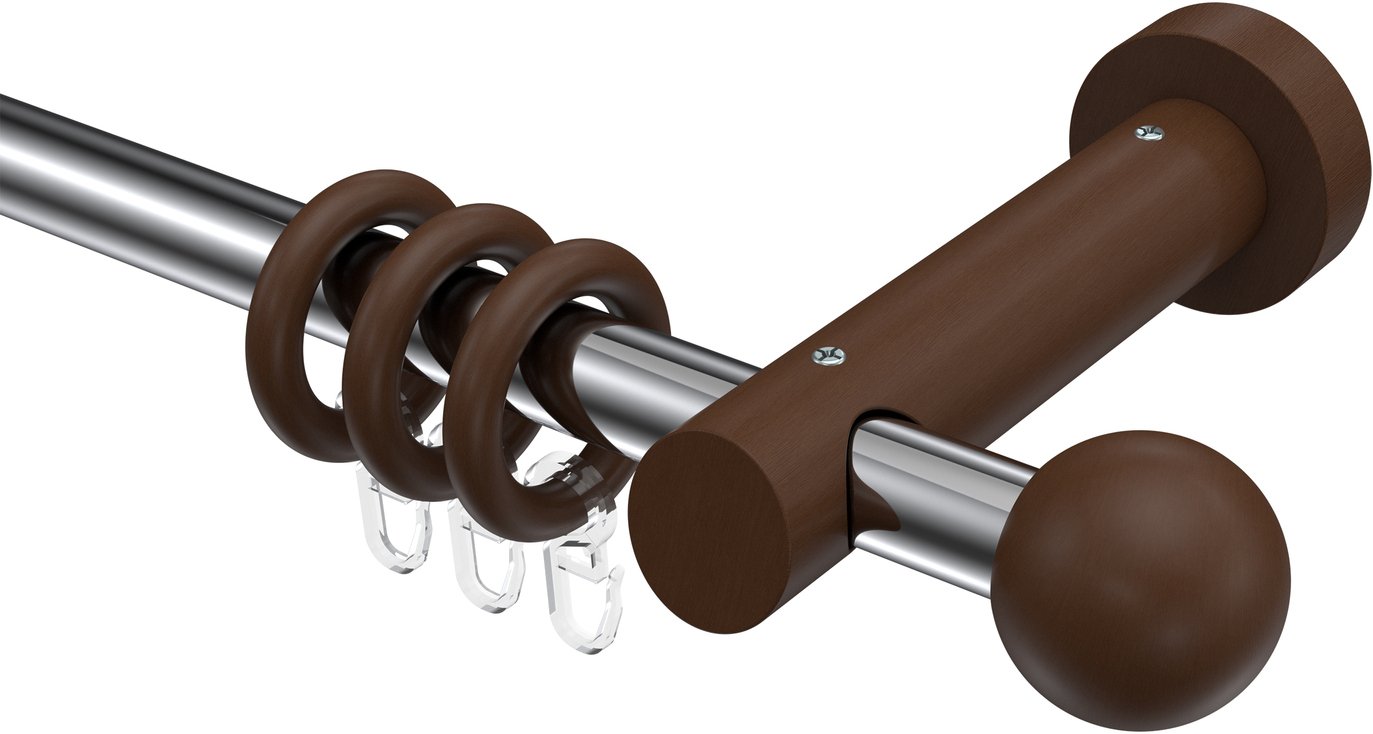 Gardinenstangen aus Metall / Holz in 20 mm Ø, 1-läufig, Modell TALENA - Luina Chrom / Nussbaum lackiert