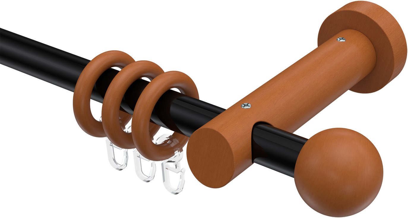 Gardinenstangen aus Metall / Holz in 20 mm Ø, 1-läufig, Modell TALENA - Luina Schwarz / Kirschbaum lackiert