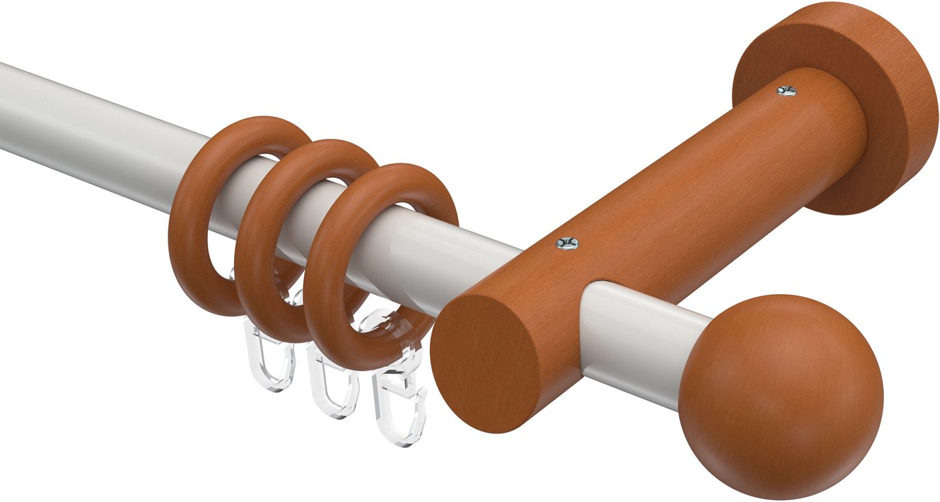 Gardinenstangen aus Metall / Holz in 20 mm Ø, 1-läufig, Modell TALENA - Luina in Weiß lackiert / Kirschbaum lackiert