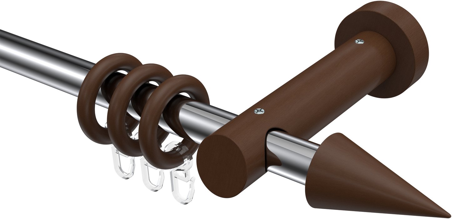 Gardinenstangen aus Metall / Holz in 20 mm Ø, 1-läufig, Modell TALENA - Siveo Chrom / Nussbaum lackiert